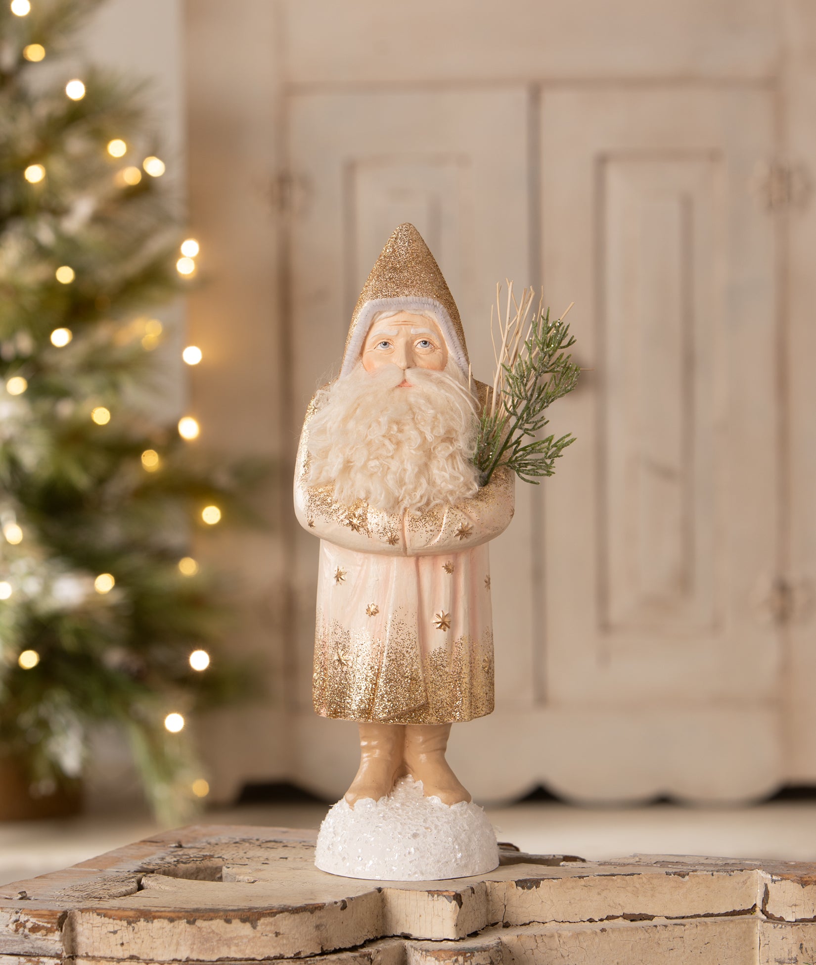 Bring elegance to your holiday decor with this Winter Blush Belsnickle from the Bethany Lowe Christmas Collection.