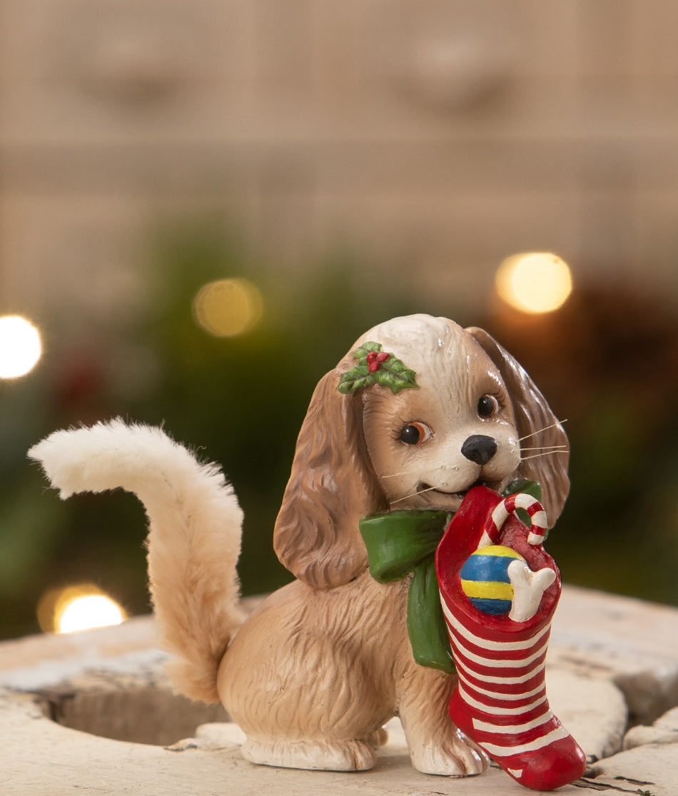 Frankie Puppy with Stocking Figurine
