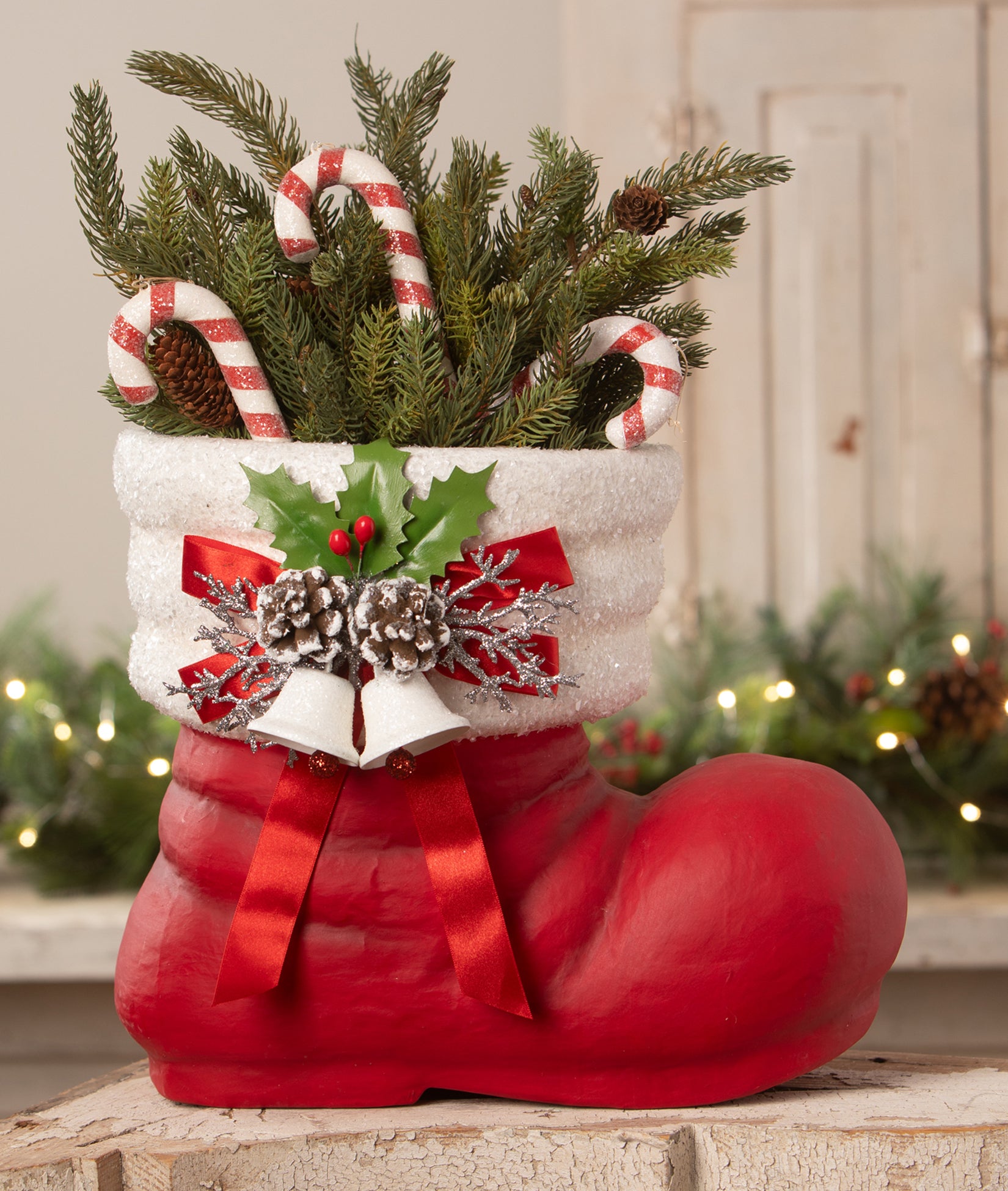 Give your Christmas decor a playful kick of nostalgia with this Retro Red Santa Boot! Dressed in bright vintage red with a soft cream cuff, this festive boot looks like it just stepped out of Santa’s workshop.