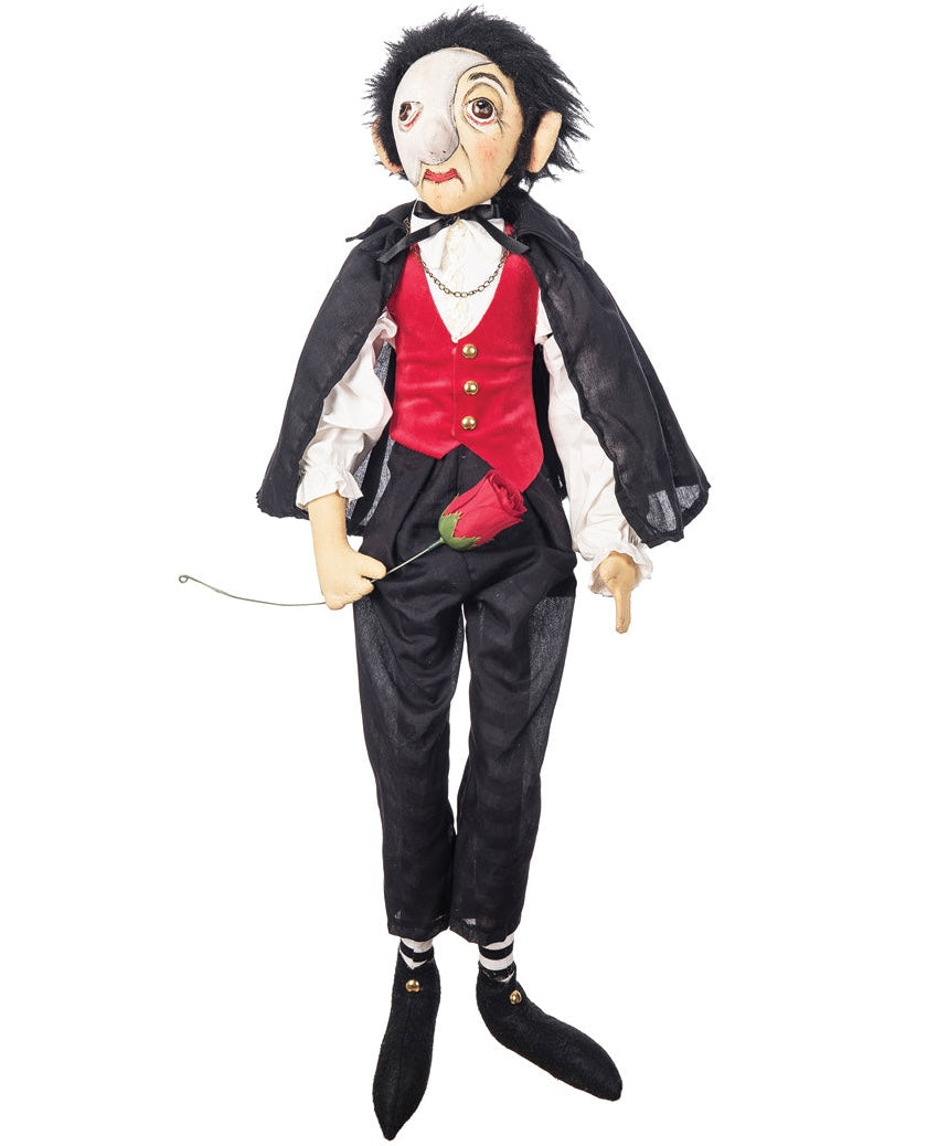 Dramatic, mysterious, and dressed to impress, Phantom Philip brings a theatrical touch to your Halloween collection. With his iconic half-mask, a rich red vest, and a single red rose in hand, he’s Joe Spencer’s hauntingly charming nod to the Phantom of the Opera.